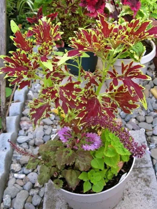 Колеус — багаторічна невисока травяниста рослина. Життєва форма — напівкущик. Стебло колеуса ребристе, чотиригранне, м'ясисте. В процесі росту нижня частина стебла дерев′яніє. Висота рослини залежить від виду: від 10 до 80 см. Листя природних видів колеусу нагадують кропиву. Листя опушене, серцеподібне, супротивне, зубчасте. В залежності від виду листова пластинка має розмір від 2 до 15 см. Забарвлення листя різнобарвне — поєднання зеленого, бордового, жовтого, червоного кольорів. Воно може бути як однотонне, так і яскраве, з кольоровими прожилками, п′ятнами, смужками, крапками, каймою по краю. У колірній палітрі листя колеуса відсутній тільки чистий синій колір, його замінює глибокий темно-фіолетовий. Квіти колеуса дрібні блакитні або лілові, зібрані в колосоподібні суцвіття. Особливого зацікавлення цвітіння декоративнолистого колеусу у квітникарів не викликає.